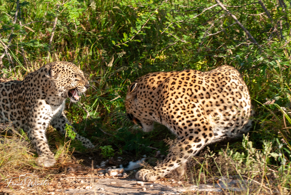 Ein Höhepunkt auf der Aloe Grove Farm in Namibia sind die Pirschfahrten zu den Raubkatzen. Wir konnten ein Leopardenpärchen beobachten und ausgiebig fotografieren. Ein unvergessliches Erlebnis.